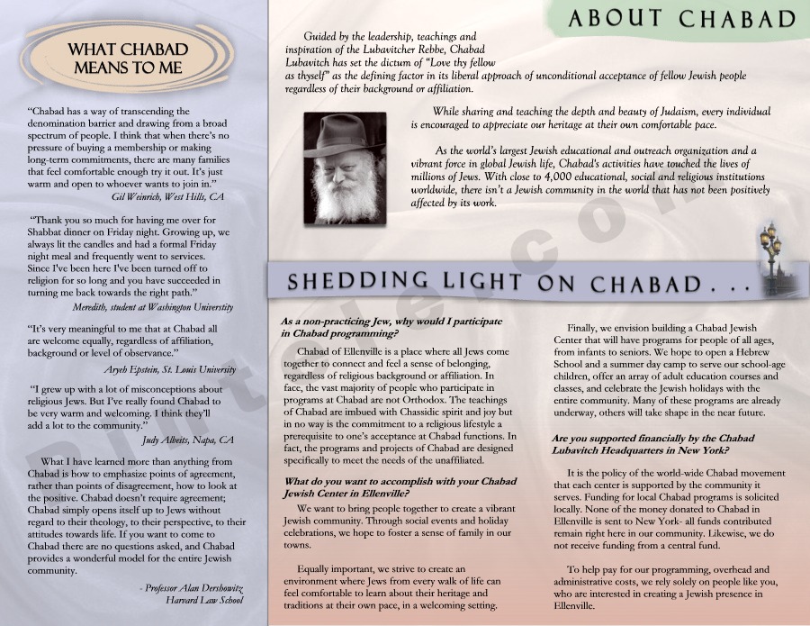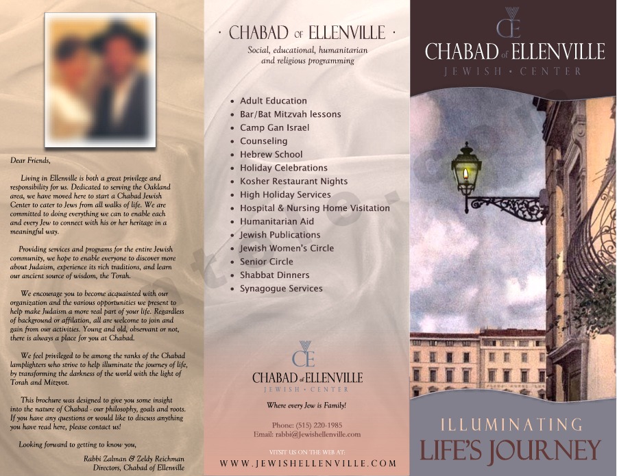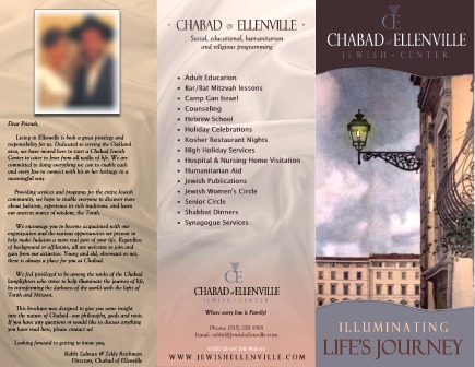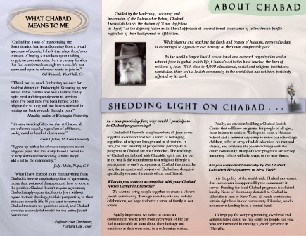 Adult Education | | Women's Events | Children's Programs | Friendship Circle | Brochures | Business Cards | Small Cards | Fundrasing |Hebrew | Calendars | Miscellaneous | |